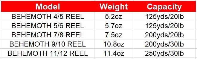 BEHEMOTH fly reels combine the most powerful drag in its class with stunning aesthetics that push the limits of fly reel design. The unique, un-machinable, die-cast construction is coupled with a durable, interlocking, large-arbor spool design that both looks and functions like a premium reel. A super-heavy duty carbon fiber drag package brings the utmost in drag strength, reliability and performance to the family. Sized for your favorite 5-weight trout rod, and all the way up to saltwater ready, big-game sizes, the BEHEMOTH reels offer performance and affordability to beginner and veteran anglers alike.