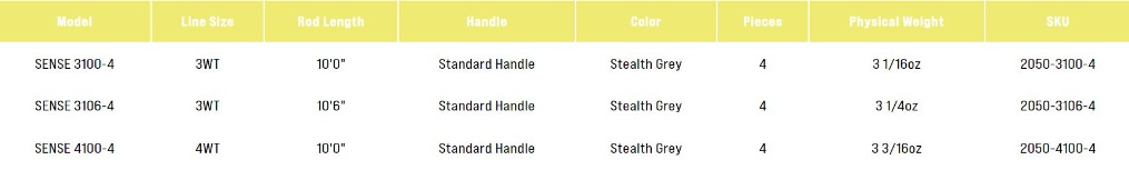 Ranging in models from the traditional 3100-4, the versatile 3106-4, to the big rig 4100-4, the SENSE offers specialized treatment for dialed execution. Single foot guides allow for a lighter more sensitive package, while optimally positioned stripper guide keeps line tighter to the hand and blank, preventing unnecessary snagging and increased control. Performance personified for the technical game of tight line fly fishing.