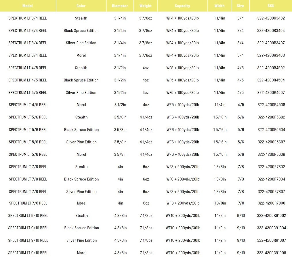 Multi-purpose reels built to cover the entire range of fly fishing applications from Brook trout to Tarpon. Every reel utilizes Sage’s exclusive SCS Drag package tuned per size to match fishing application. One revolution drag knob featured throughout the series allows for ease of adjustment and reliable, consistent, repeatable drag pressure. Just select desired weight and feature set for your application. The SPECTRUM LT reel offering brings a sophisticated, high-performance drag system to an ultra light rigid frame. The One Revolution Drag Knob offers quick and precise drag settings and provides the kind of power and smoothness you’d expect from a large traditional drag system, only without the bulk or weight. Available in a range of sizes from 3/4 to 9/10, there's sure to be a perfect size for any application where strong lightweight features are desired.