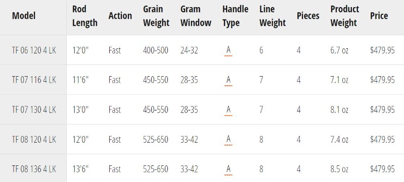 These rods can pick up longer, heavier fly lines and tips with minimal effort and a unique touch-and-go feel. The five rod LK Legacy TH series features the 6-weight for trout spey, the 12' 8-weight for two handing from the beach or lifting big salmon and steelhead, and the longer 7 and 8-weight rods for handling various spey lines for steelhead and salmon.